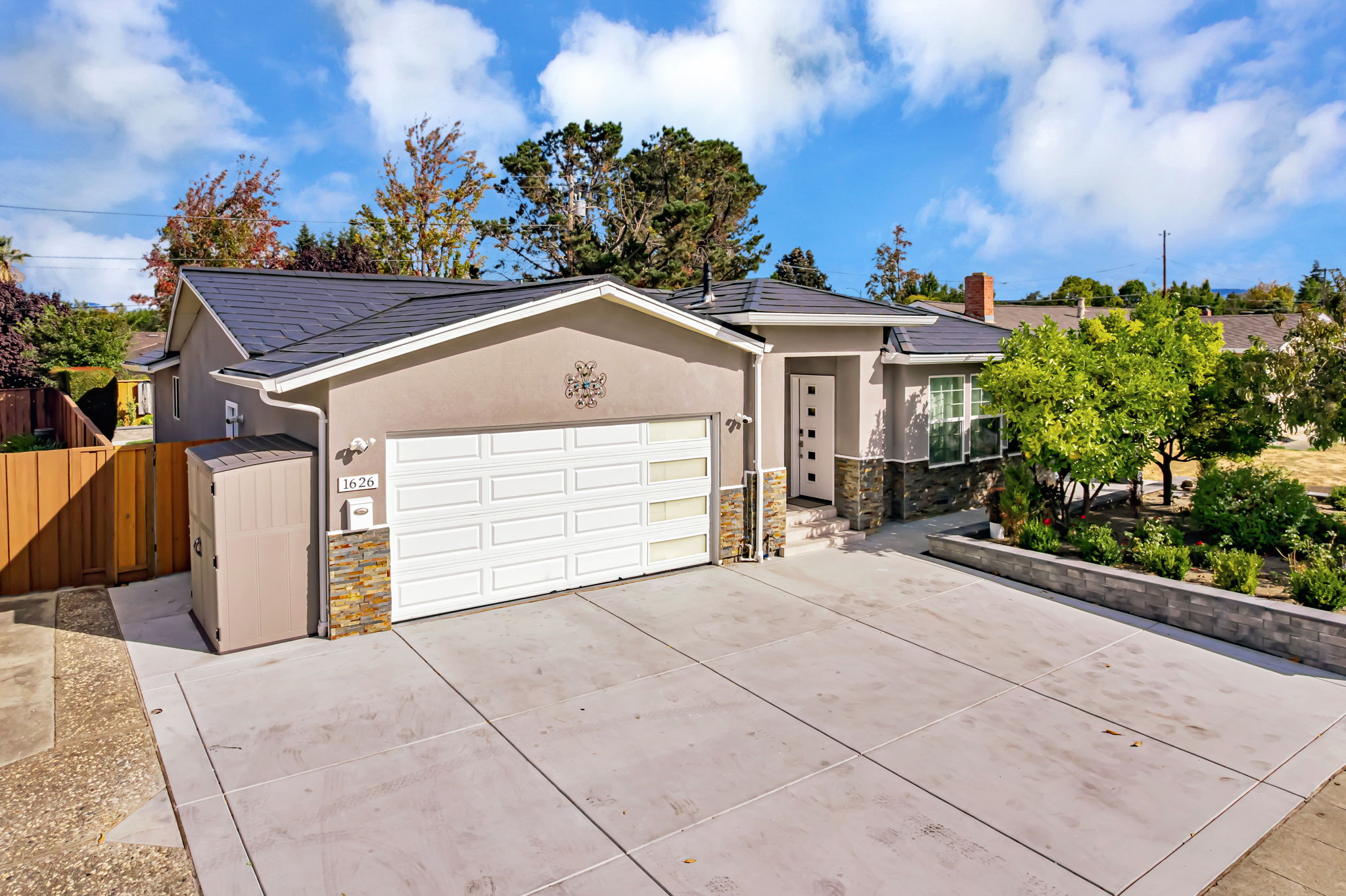 This beautiful turnkey 4BR/3BA single level home spans approx. 1,923 sq ft and offers the perfect balance of style, comfort and convenience - giving you peace of mind with no major projects needed! High ceilings, abundant windows and skylights fill the open room layout with natural light creating a bright, welcoming space. The home was transpired, and additional living space was created in 2019. The complete renovation introduced new: flooring/windows throughout, a stylish kitchen with stainless mosaic tile and granite counters, spa-inspired bathrooms and HVAC system. Recently, the home has again been elevated with a Tesla Solar Roof (owned!), power wall and vehicle charging station, main panel upgrade, Samsung kitchen appliances, Indow window inserts, whole-house water softener, 3 phase water purifier, hardscaping creating usable/low maintenance space and a dry sauna to pamper yourself - making this home as luxurious as it is functional. Two ensuite bedrooms provide privacy for you and your guests. Nestled in one of the most central commute locations of Silicon Valley, you are a few-minute walk to Apple, minutes to Nvidia and access to Silicon Valley's tech corridor. Located near highly rated schools, restaurants and shopping, you are going to love calling this home!